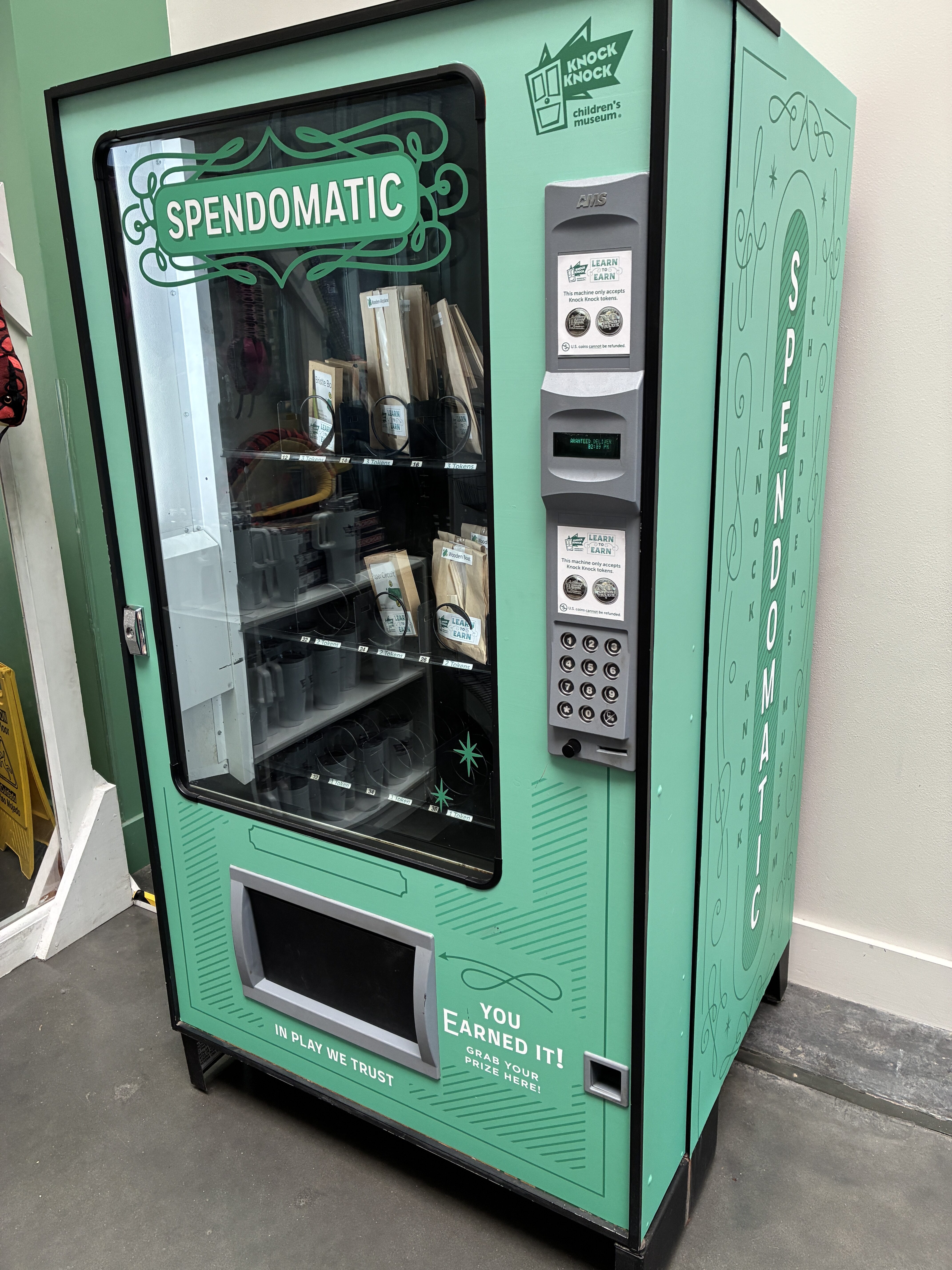 Children can then use their earned tokens to “purchase” items at the museum’s new Spend-O-Matic, a reimagined vending machine that accepts only Knock Knock tokens that the children “earn.” The Spend-O-Matic allows children to “purchase” fun DIY projects and crafts and even artwork created and donated by fellow young visitors—introducing concepts of spending choices, monetary value, and entrepreneurship.